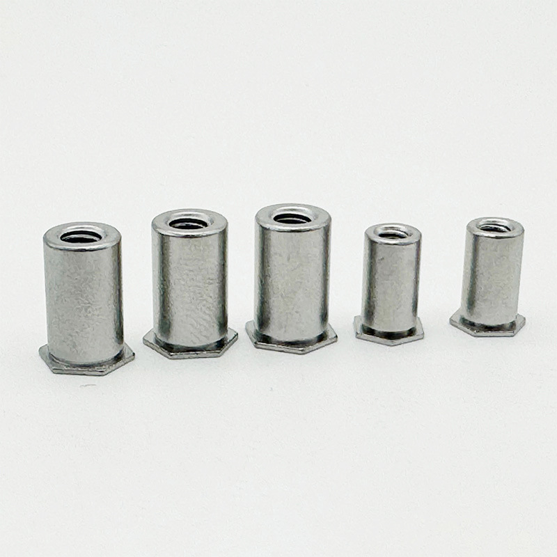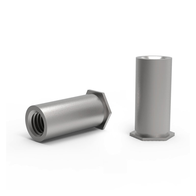 Denna nitade mutter skapar en tuff, vibrationssäker kvinnlig tråd, bra för när du inte kan svetsa eller knacka på trådar. Det är perfekt för plåt, paneler och kapslingar där du behöver en ren look och pålitlig prestanda.