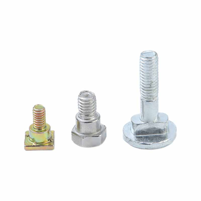 Bultar för spårkan passa perfekt med spåret. Särskilda former som fyrkantiga huvuden och T-formade huvuden kan bara klämmas fast i spåret för att förhindra att bultarna roterar. Den fyrkantiga bulten är klämd i det fyrkantiga spåret. När muttern dras åt, kläms fyrkantiga huvudet mot spårväggen och bulten kommer inte att rotera längs. Installationen är särskilt orofri och kan också säkerställa anslutningsstyrkan.
