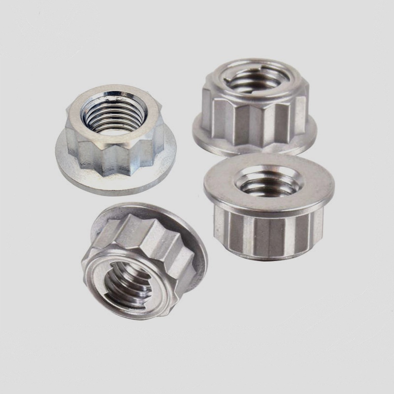 S: Vår vanliga kostnadseffektiva 12-punkts tvättmutter görs vanligtvis för att vara återanvändbar-det är ett rådande vridmomentfäste. För det mesta har den en elastisk insats eller en deformerad tråd. Dessa delar skapar friktion (det är det rådande vridmomentet) för att förhindra att muttern lossnar på grund av vibrationer.