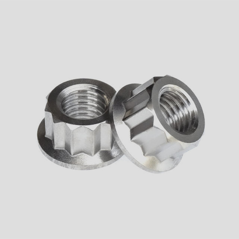Denna kostnadseffektiva 12 -punkts tvättmutter har ett mycket distinkt utseende - den har en 12 -punkts (motsvarande dubbla hexagonal) upphöjda huvud. Denna design ger en 30-graders kontaktyta för hylsan, så även med begränsat utrymme kan ett större vridmoment appliceras.