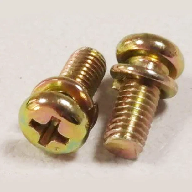 Xiaoguo -korset infällda pannhuvudskruvar och fjädertvättmonterade komponent: Kombinationen består av två huvuddelar: Cross slot pan huvudskruv och fjäderbricka. Naglar är gängade, vanligtvis gjorda av metall med ett platt huvud och en korsfält för enkel installation och borttagning med en skruvmejsel. Fjäderdynan är en elastisk metallpackning som används för att förbättra den löstande effekten av den snäva anslutningen.