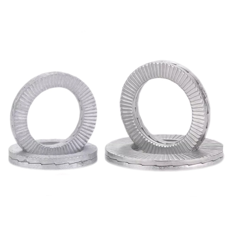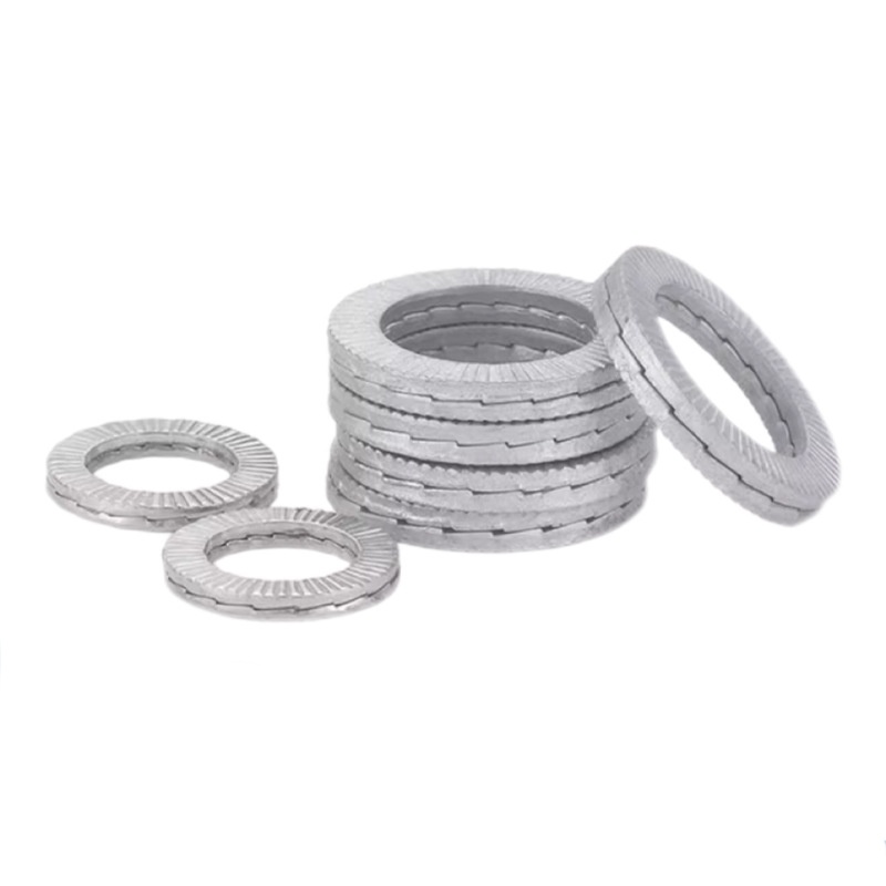 Självlåsande brickor med dubbla ändar är idealiska för fastsättning i miljöer med hög vibration. Deras applikationer omfattar kritiska sektorer som biltillverkning, tunga maskiner, jordbruksutrustning, flyg- och järnvägssystem, där säker fastsättning är helt avgörande för den övergripande säkerheten.