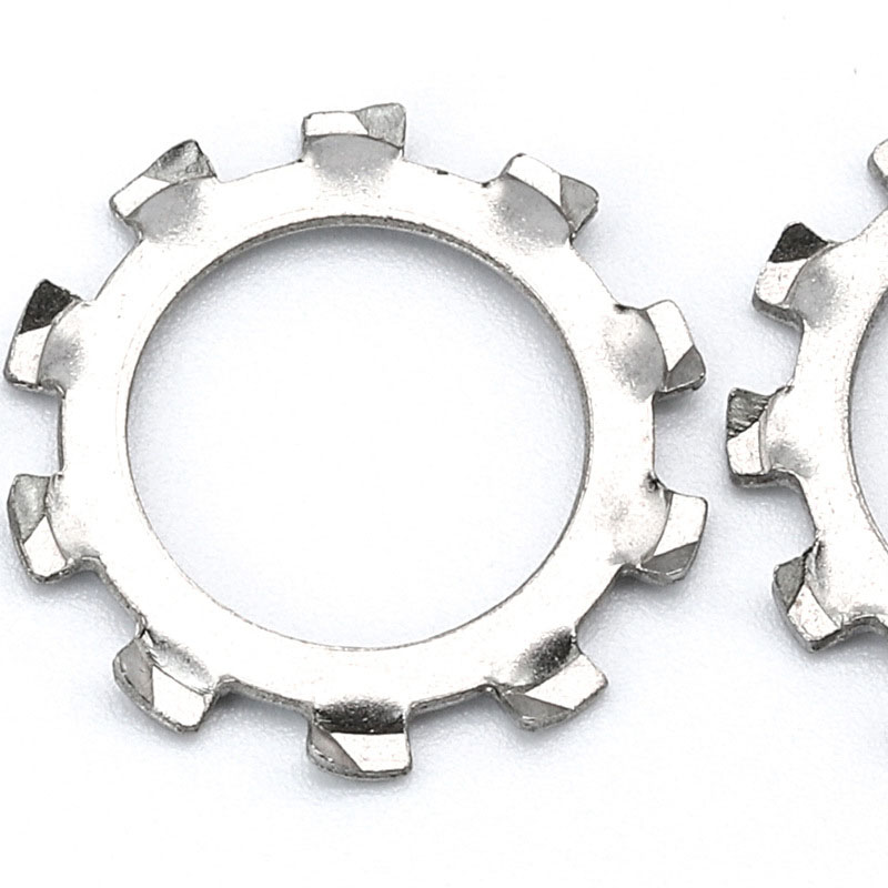 S: Det yttre tänderlåsbrickan har radiella tänder som biter i ytan som den är fäst vid och bulthuvudet eller muttern, vilket skapar friktion för att motstå rörelse. När det är vibrationer, suger tvättmännens fjädring upp små rörelser, medan tänderna låses in i ytorna för att hindra dem från att snurra. Detta tvådelade system, friktion från tänderna plus mekanisk låsning, gör att den fungerar bättre än platta brickor i situationer med skiftande belastningar.
