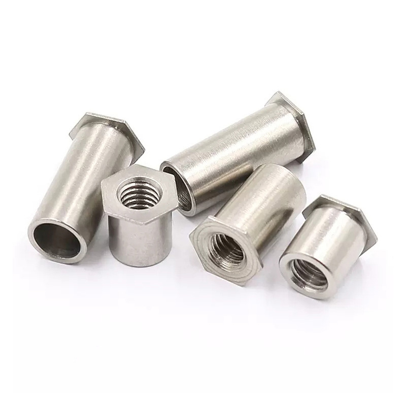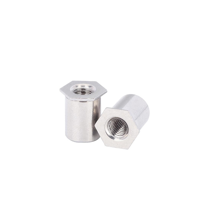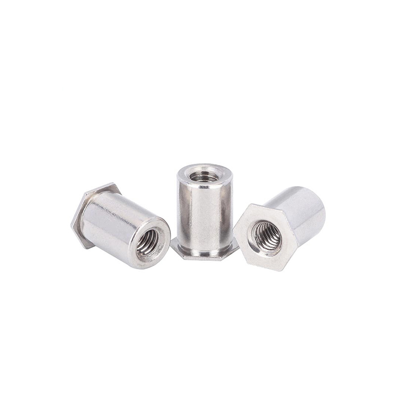 Den härdade rostfritt stål hexagonala nutnötskolonnen är bra på att hantera höga statiska och dynamiska belastningar. Dess hexagonala form hjälper den verkligen att bekämpa vridningskrafter, så den kommer inte att lossna när det finns vibrationer, mycket viktigt för bilar och maskiner. När du installerar den sprider den stora utbuktningen som bildas på baksidan klämkrafter över ett bredare område, vilket minskar stressen på materialet.