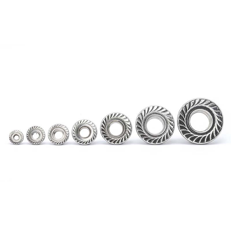 Hexagonflänsnötter med fin tonhöjdstrådgrepp bättre på släta eller hårda ytor, minska glidningen. De är dyrare än grova tonhöjdsmuttrar och passar bättre för precisionsarbete som mekanisk kalibrering eller flyg- och rymdmontering.
