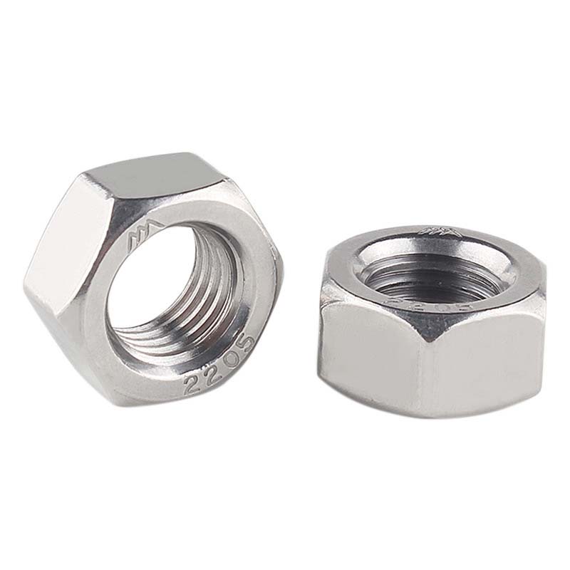 Dessa sexkantsmuttrar med stora bredder över plan följer standardstorleksspecifikationer, som ASME B18.2.2 eller ISO 4032 försexkantsmuttrar.
