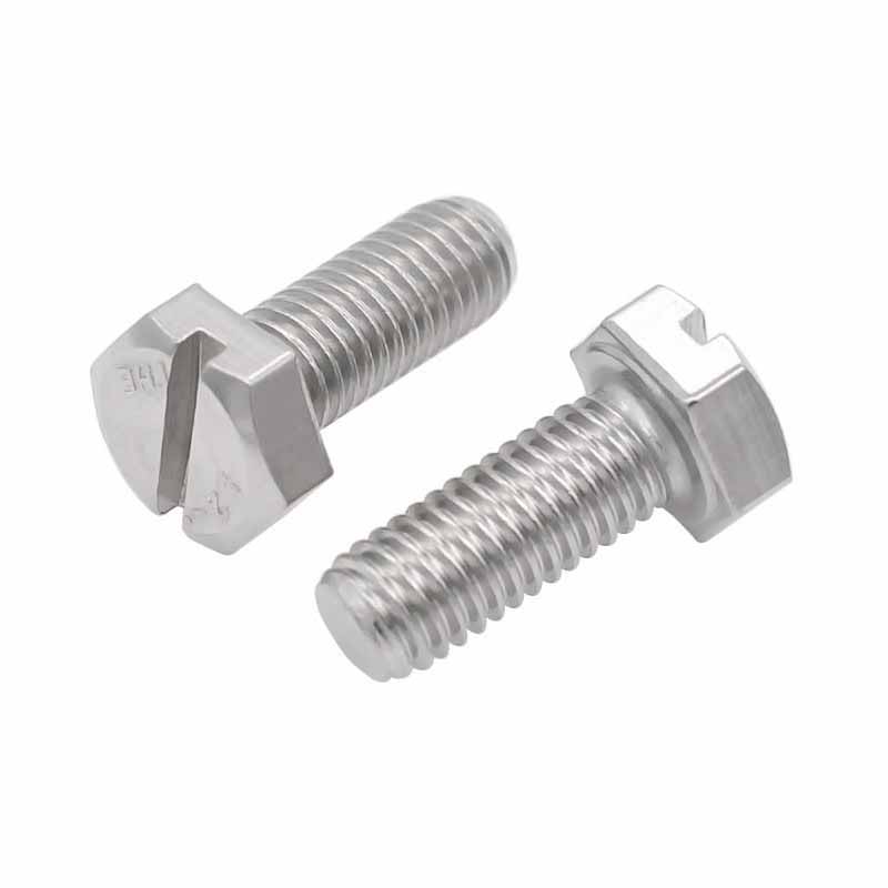 Hexagonala slitsbultarär en typ av fästelement som kombinerar ett standard hexagonalt huvud med en rak spår (liknande en platt huvudskruv). De används ofta inom de mekaniska och bilindustrin. Dra åt med en skiftnyckel eller skruvmejsel.