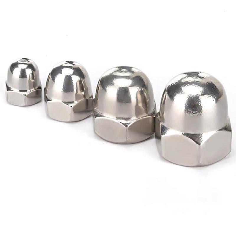 Hexon Hexagon täcker nötterär vanligtvis tillverkade av rostfritt stål, kolstål eller annat material som krävs av kunder för att balansera produktprestanda och kostnadseffektivitet. Rostfrittl Hög kronhexagon täckmutterarbete BEtter i våta eller frätande miljöer, medan mässing tillhandahåller dekorativa egenskaper främst för dekorativa ändamål. Material med hög hållfasthet kan användas i flyg- eller tunga maskiner för att säkerställa motstånd mot extrema temperaturer och hårda arbetsmiljöer.