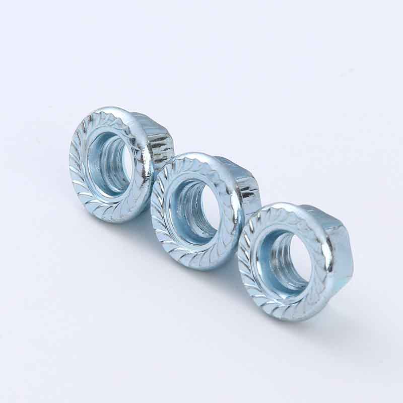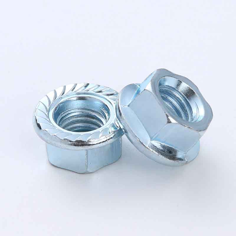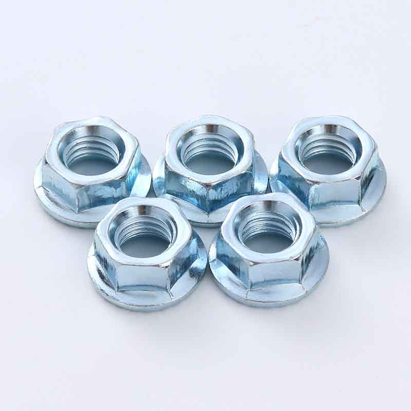 Höghållfasta sexkantsmuttrar med flänsar är fästelement gjorda genom att kombinera en vanlig sexkantsmutter med en inbyggd bred cirkulär bas, ungefär som en bricka. Inga separata brickor krävs, vilket möjliggör snabb montering. Uppfyller standarder av hög hållfasthet såsom 8, 10 eller 12. Dessa muttrar tål tunga belastningar och ger stabila och säkra anslutningar under hög belastning eller vibration, vilket gör dem lämpliga för användning i tuffa industri- och konstruktionsmiljöer.