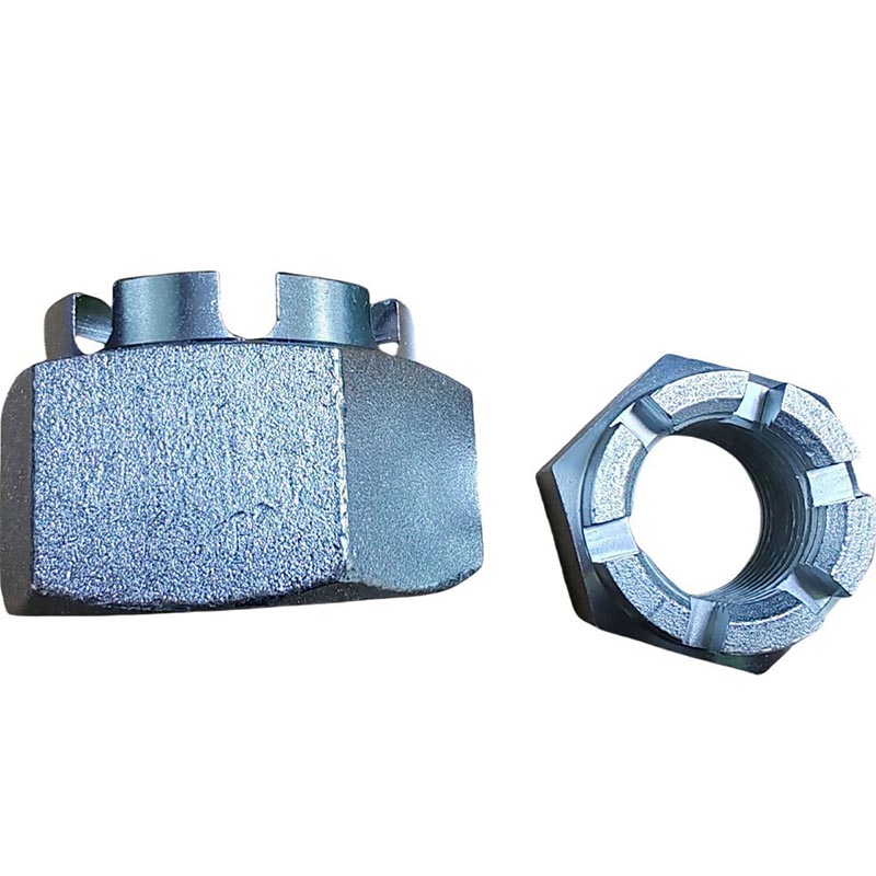 S: Ja, vi erbjuder en mängd olika ytbehandlingsalternativ för vår uppdragskritiska kronmutter med spår. Efter dessa behandlingar kommer deras anti-rostförmåga att förbättras kraftigt och deras utseende verkar också annorlunda. Du kan välja mellan följande beläggningar: galvaniserad i blått, vitt och gult, varmt dopp galvaniserade och geometriska beläggningar finns också tillgängliga.