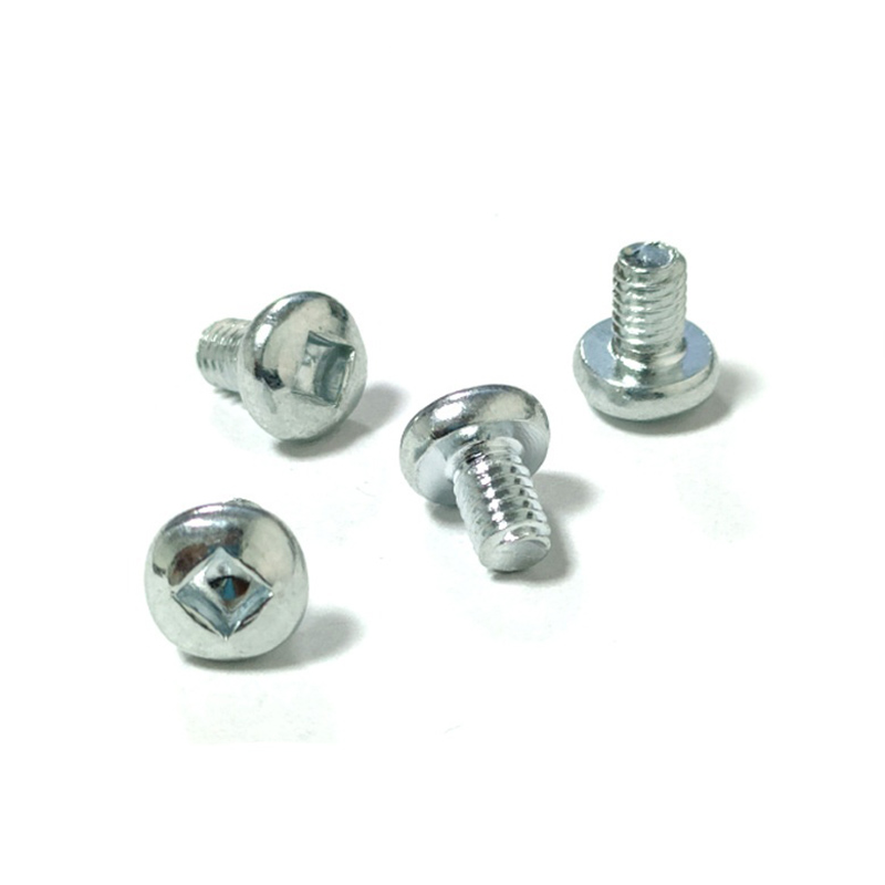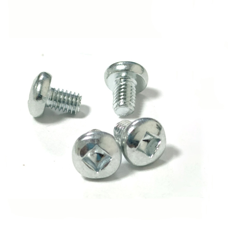 Depannhuvudskruv med fyrkantig spårHar en fyrkantig depression på toppen, vilket är bekvämt för åtdragning och inte lätt att glida. Huvudet är bredare och har en större kontaktyta, vilket inte är lätt att skada ytan på kontaktobjektet. Skruvhuvudet kommer inte att vara inbäddat i anslutningsobjektet på grund av översträckning.