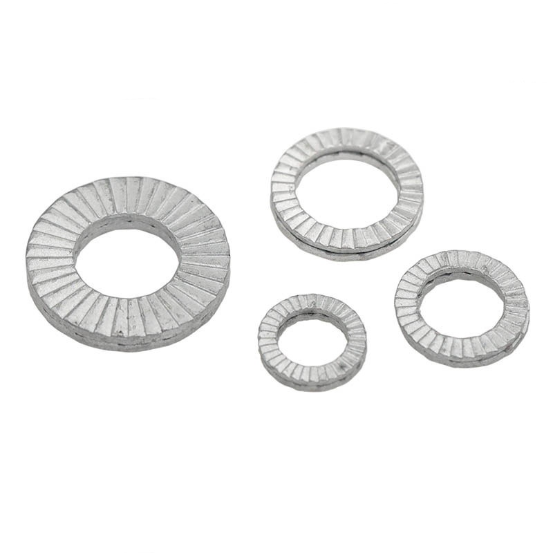 Våra regelbundna permanent låsande tvåfaldiga självlåsningsbrickor är gjorda av kolstål med en zinkbeläggning. Om du behöver dem för att motstå Rust bättre har vi alternativ som A2/A4 (304/316) rostfritt stål. Det finns extra beläggningar också - som Geomet, vilket är bättre för miljön, dacromet, och du kan få PTFE -tätningar om du vill. Vi väljer material som ser till att brickorna fortfarande låser saker ordentligt även om förhållandena är grova.
