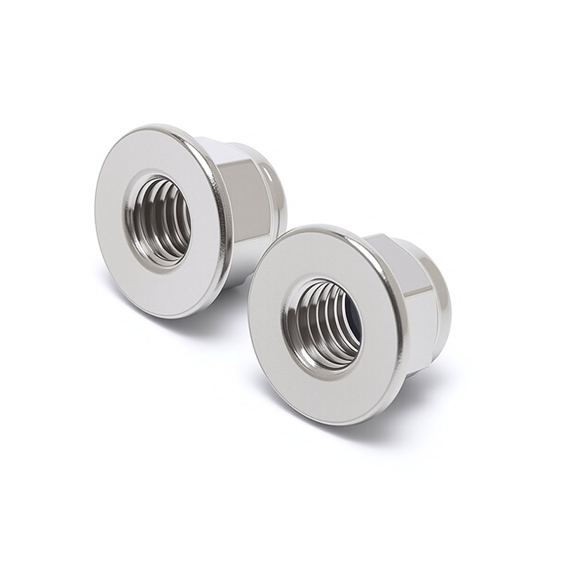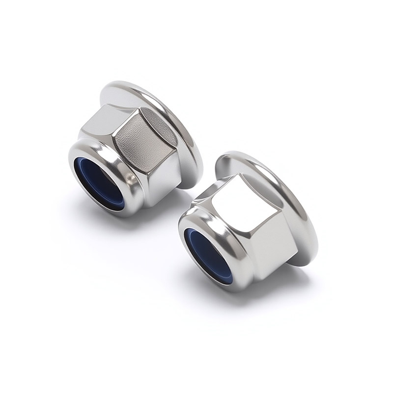 Till skillnad från nylonmuttrar använder denna mutter metallgängdeformation för att låsa. Den har inga plastdelar, så den presterar bättre i högtemperaturmiljöer. Den levereras med en integrerad fläns som fördelar trycket jämnt, så att du inte behöver extra brickor. Metallstrukturen är mer hållbar och lämplig för långvarig tung användning vid mekanisk montering.