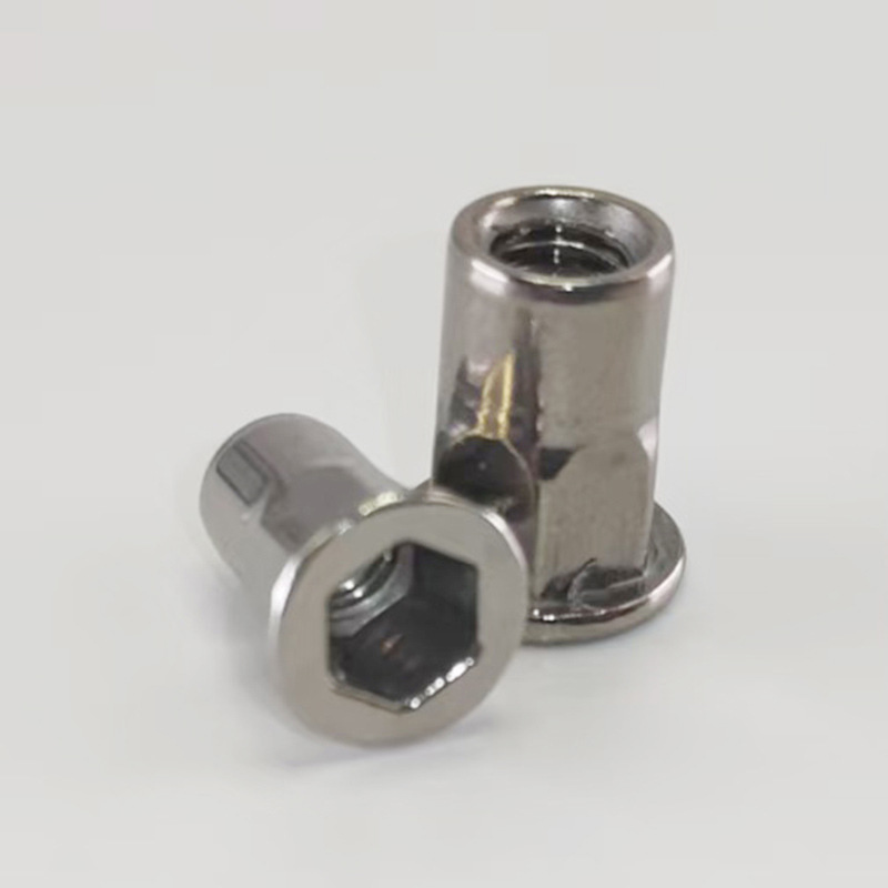 Den pålitliga hexnitmuttern används mycket i industrier som bil, flyg, järnväg och hushållsapparater. Det är för att göra starka gängade fästpunkter på metallplåtar och rör. Den är gjord speciellt för trånga utrymmen där du bara kan nå från ena sidan - så den fungerar bra för blinda applikationer. Detta fäste är bra för tunna material (mellan 0,5 och 6 mm). Du behöver inte svetsa eller knacka på invändiga gängor när du använder den, och när den väl är installerad snurrar den inte lätt.