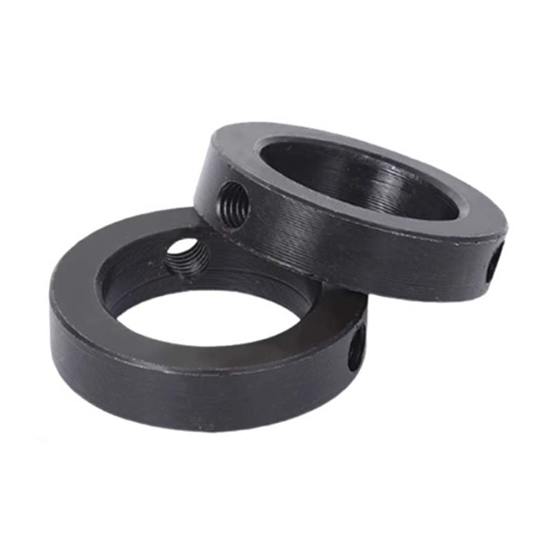 Skruvlåsning av stödring med låsell krage har en gängad låsring som skruvar direkt på axlarna eller lagerhusen, vilket ger ett säkert, vibrationsbeständigt lås. Till skillnad från konventionella fästringar som kräver böjning för att säkra, använder dessa fästringar en justerbar skruv på låsringen för att applicera jämnt tryck runt axeln. Även under höga hastigheter eller höga krafter förhindrar dessa fästringar förskjutning. Låsringen fördelar också trycket jämnt så att axeln inte komprimeras i ett enda område. Kombinationen av fästringar och låsringar är lämplig för applikationer som kräver exakt inriktning och långvarig stabilitet, såsom växelsystem eller fabriksutrustning.