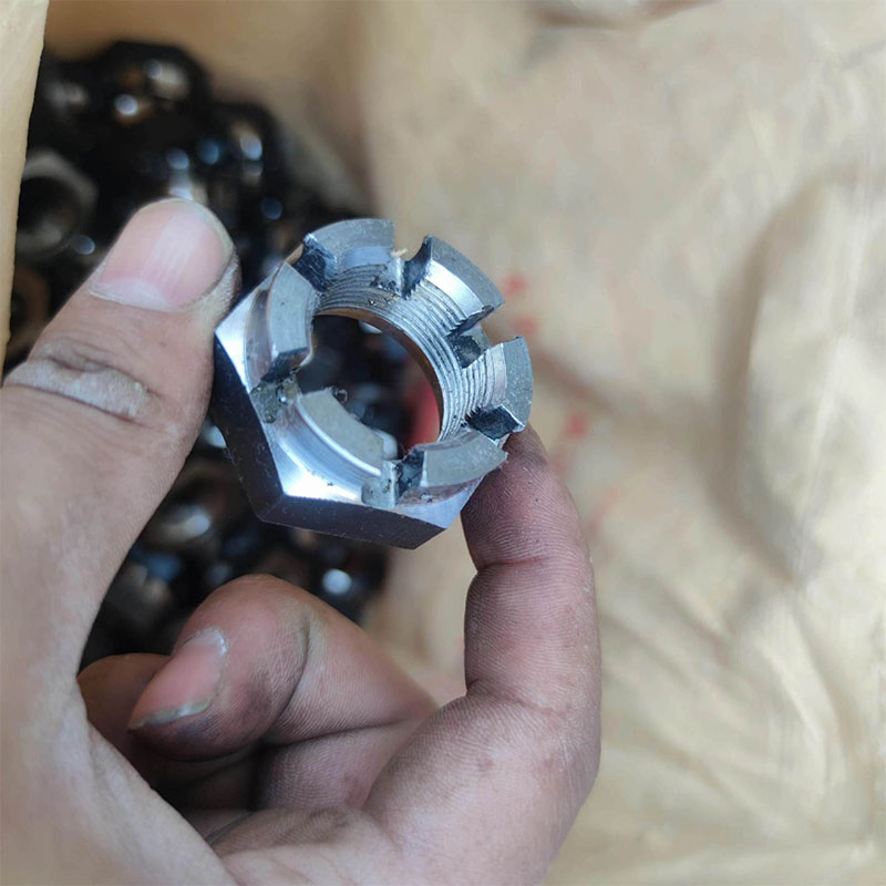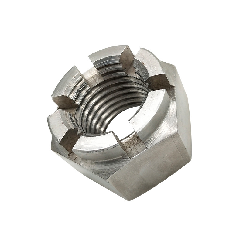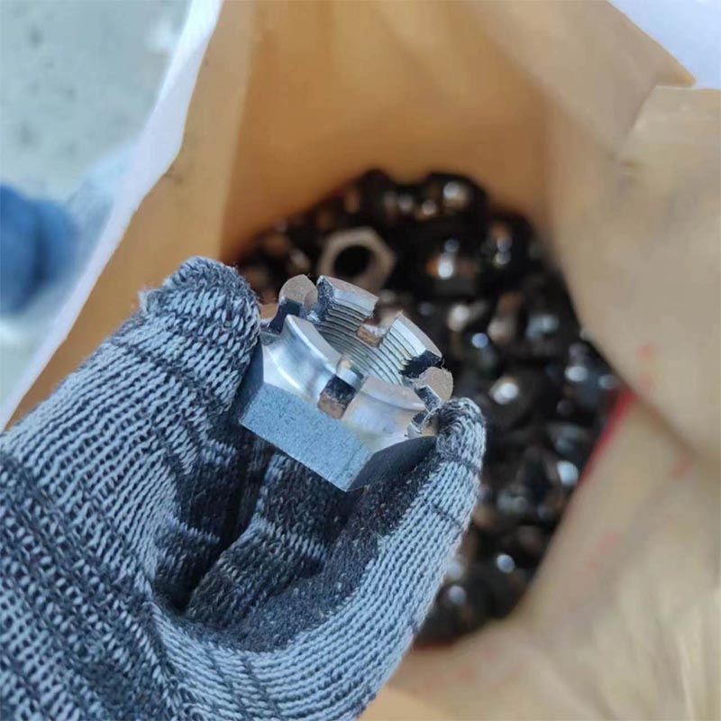 S: Den slitsade för kontrollkrona mutter med spår används vanligtvis på platser där det finns mycket vibrations- och säkerhetsfrågor mest. Vanliga användningsområden inkluderar hjullager på axlar, kingpins, flygplanskontrolllänkar och tunga maskiner på plats.