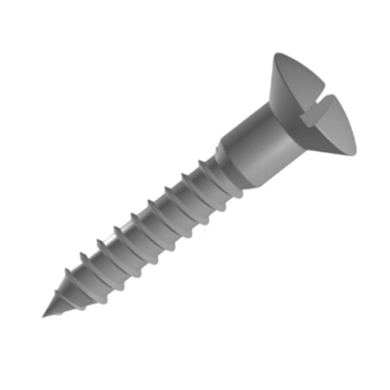 Slitsade, upphöjda, försänkta träskruvar är klassiska träfästen. De har en lätt välvd, räfflad topp, men en sluttande botten som gör att de kan sitta i jämnhöjd med träet. Denna lätta båge ger mer takhöjd än försänkta skruvar med platt huvud, vilket gör att de mindre benägna att spricka mjukt trä när de dras åt.