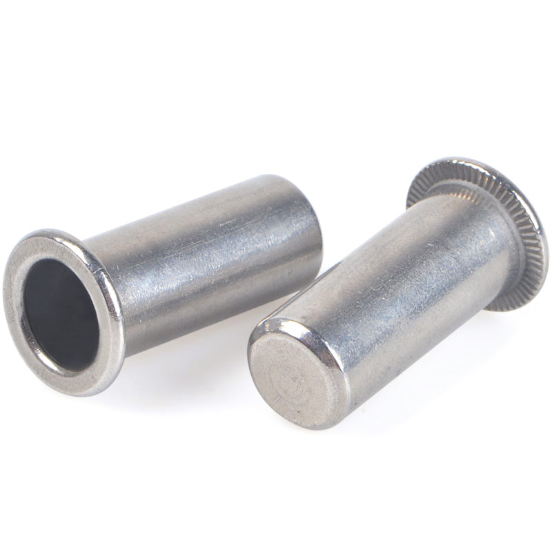 När du observerar det släta ytan räknar nitade nötter från utsidan, är det första du kommer att märka deras koniska huvuden - vars inre vinkel är standard 100 grader eller 120 grader. Denna form gör att muttrarna kan vara perfekt i linje med ytan på det anslutna materialet.