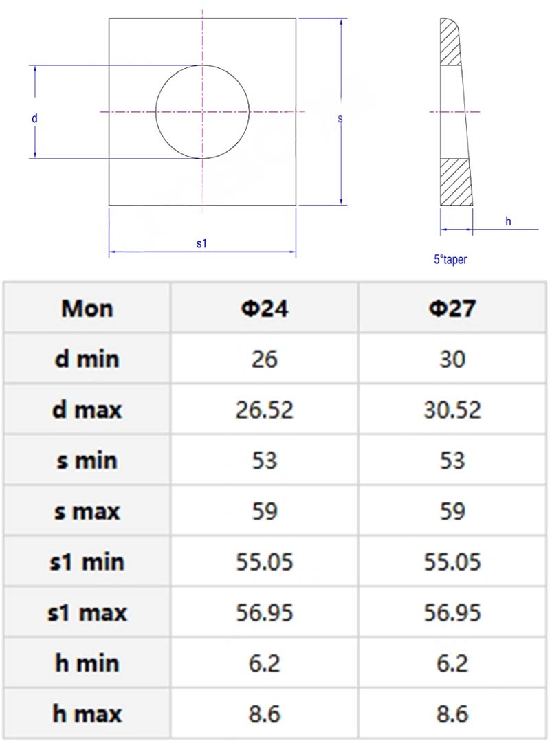 Den fyrkantiga avfasningsbrickan är en bricka som görs för att sprida vikt jämnt och hindra fästelement från att lossna i situationer med hög stress. Det skiljer sig från vanliga plattbrickor eftersom dess fyrkantiga form med en sluttande kant hjälper den att röra vid ytan bättre och ställa upp delar ordentligt, vilket är bra för strukturer och maskiner. Människor använder det mycket i konstruktion, bilar och tunga maskiner eftersom det kan hantera krafter i vinklar och minska slitage på de anslutna delarna. Designen hjälper till att förhindra att glida, så bultade leder håller längre. Det finns i olika storlekar och material, vilket gör det användbart för både industriella och kommersiella projekt.