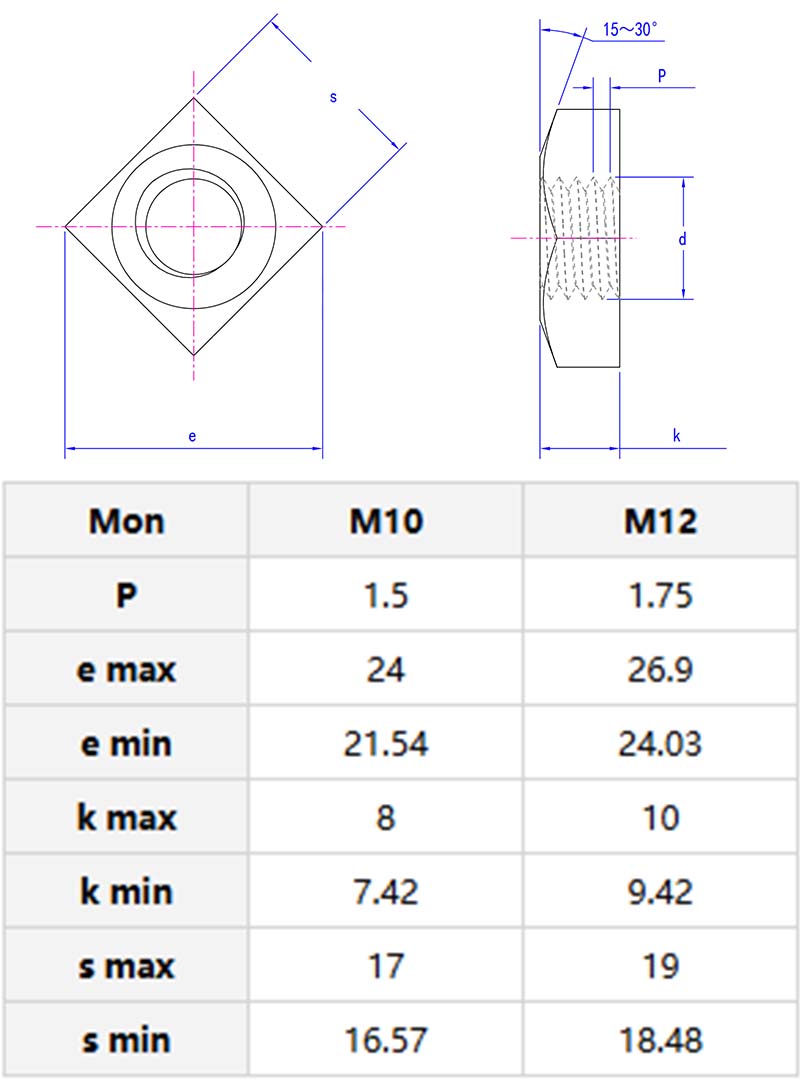 Fyrkantig mutter med stora över lägenheter är ett tungt fästelement som är utformat för användning i miljöer med hög belastning. Dess överdimensionerade yta (motsatt sida) förbättrar skiftnyckelns grepp om mutter och vridmomentkontroll. Det används vanligtvis för att säkra bultar i konstruktion, maskiner eller jordbruksutrustning.