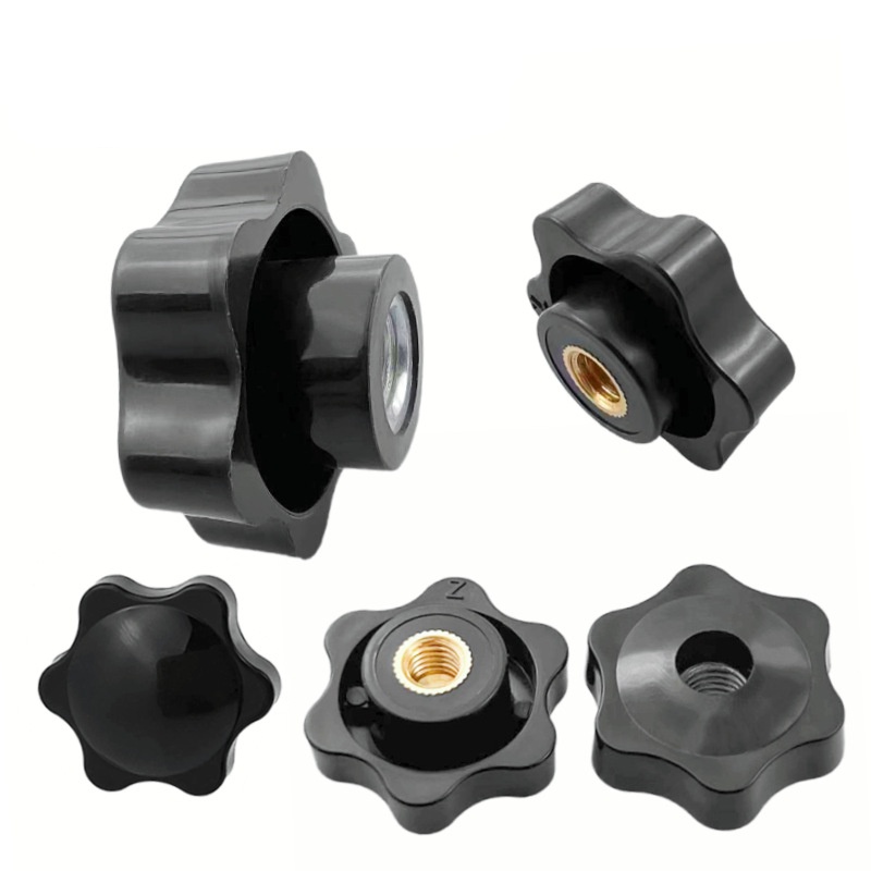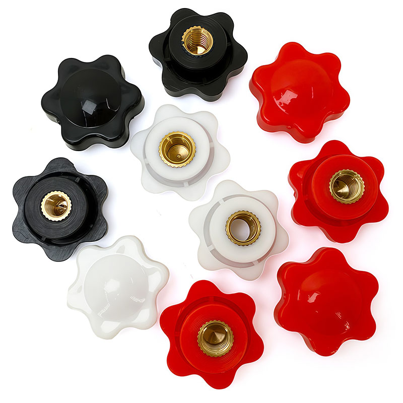 S: Det finns tre viktiga faktorer att tänka på när du väljer stjärnknopp genom håltypmutter: Först, trådstorleken, som bör motsvara metriska storlekar som M4 och M6 eller imperialistiska storlekar som 1/4 "-20; andra, den materiella tjockleken, det vill säga tjockleken på det monterande underlaget; och tredje, det nödvändiga vridmomentet, för att säkerställa att åtdragningen under monteringen uppfylls.