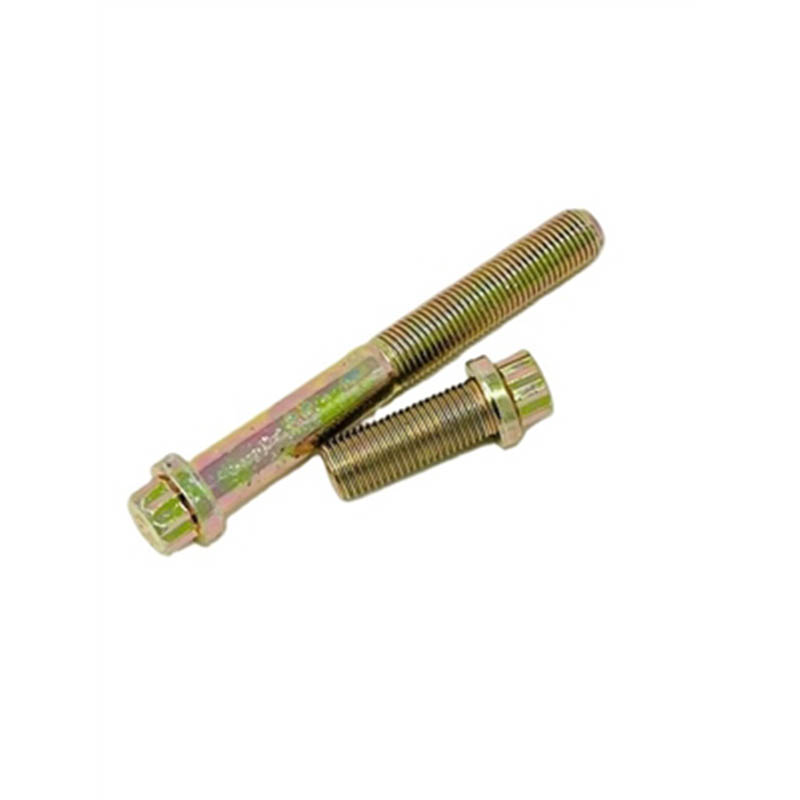 Dessa höghållfasta 12-punktsflänsbultar i stål har en praktisk standardform utan extra dekorativa detaljer. Toppen är ett 12-sidigt huvud, gjord för att fungera med en matchande 12-punktshylsa för åtdragning eller lossning. Precis under huvudet finns en bred, platt fläns som fungerar som en inbyggd bricka, så du behöver inte en separat bricka för de flesta jobb. Axeln under flänsen är rak, med släta, jämna gängor som löper hela vägen ner för att passa muttrar eller förgängade hål. Det finns inga grova kanter eller grader som skulle göra installationen svår. Hela fästet är kompakt och solidt, gjort för att sitta plant mot ytor för en tät passform. Varje del har samma exakta mått, så var och en ser ut och passar likadant - detta gör den enkel att använda för upprepat monteringsarbete eller snabba byten.