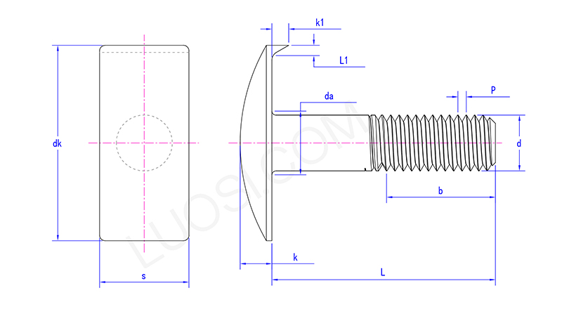 Huvudet på T-huvudtankskruven är i form av en T, vilket är bekvämt att klämmas i motsvarande T-formade spår för att förhindra att den roterar med när den strammas. Skruvens svans är speciellt utformad för att vara fast fixerad i basen som ett ankare.