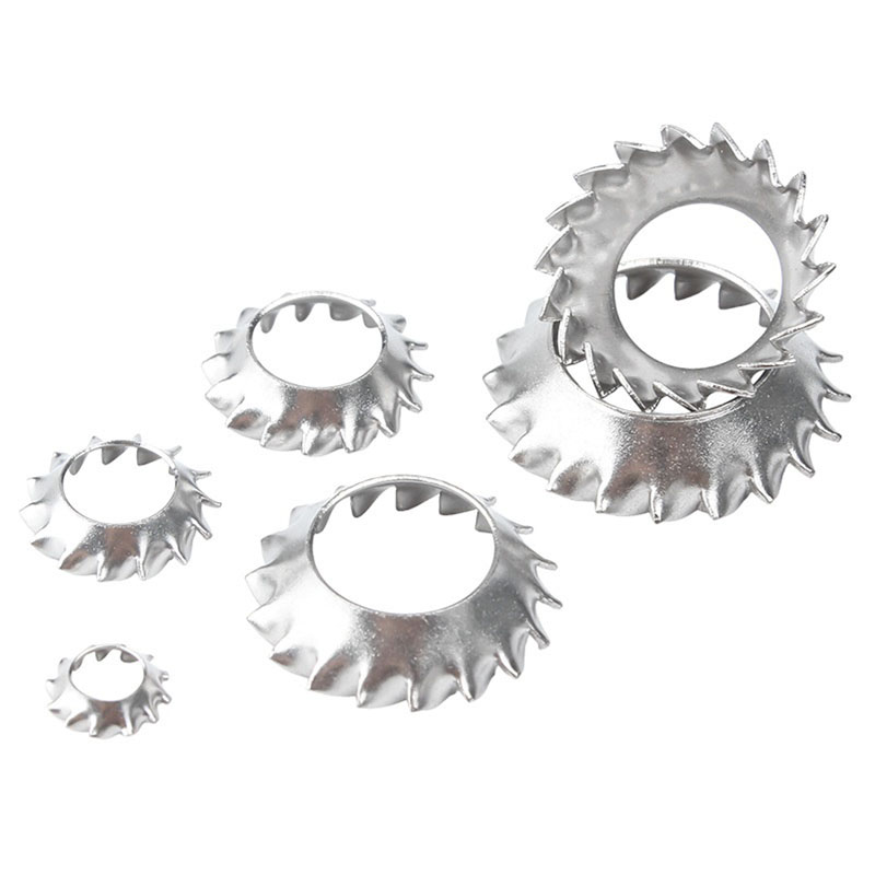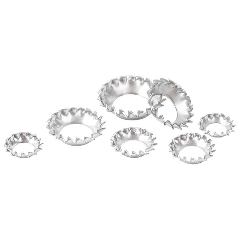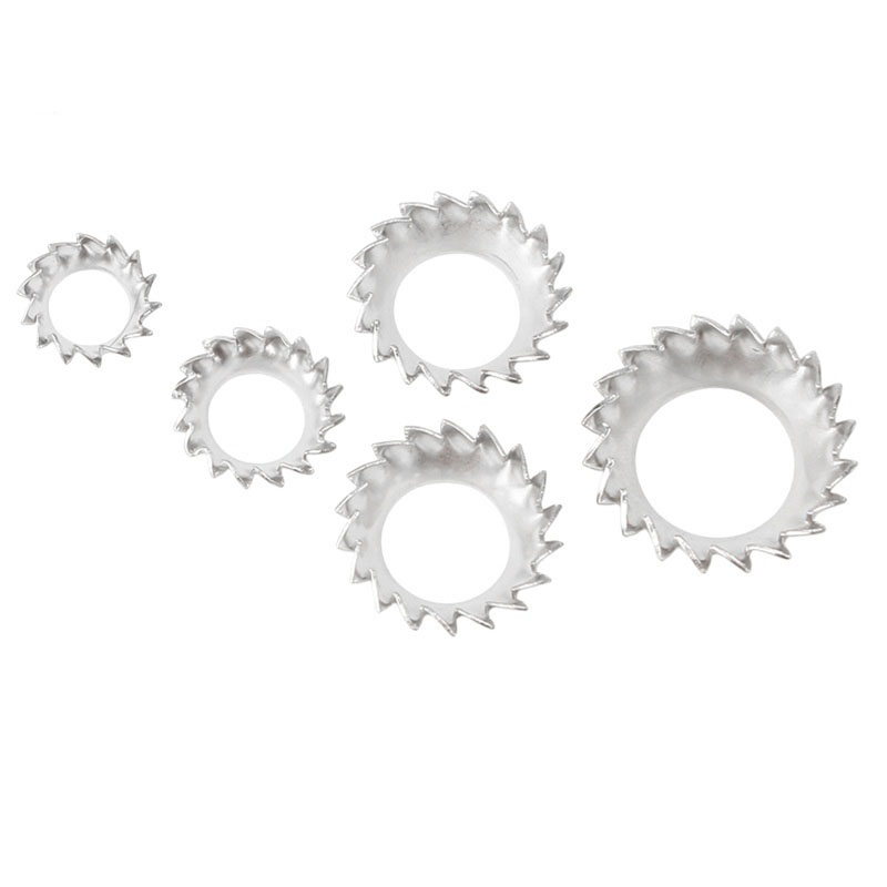 Deavsmalnande låsbrickaär ett konformat fästelement som huvudsakligen används för att förhindra att bulten lossnar på grund av vibrationer eller tung belastning. Den har små tänder eller åsar runt den. När de installeras i rätt läge kommer åsarna att skapa ett stabilt tryck mellan muttern och dess anslutningsyta, vilket gör anslutningen säkrare, längre och mindre benägna att lossa.