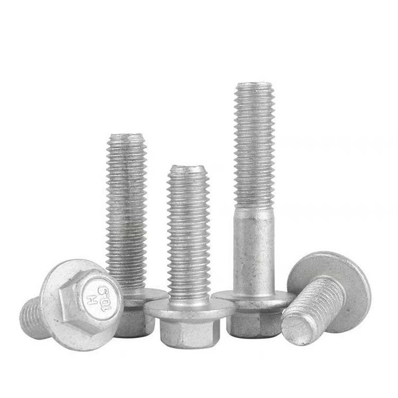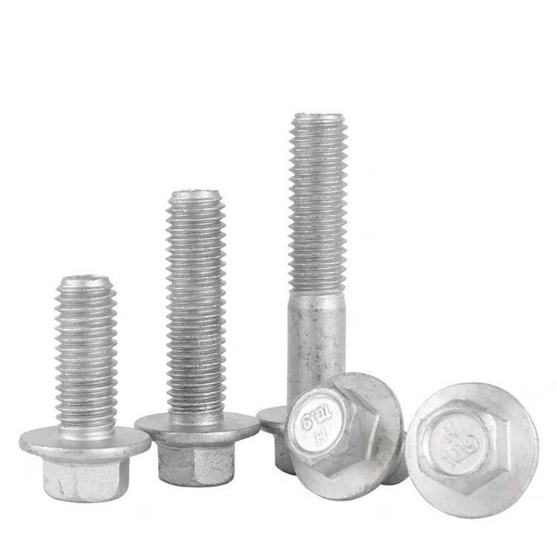 Typ B Stora hexagonhuvudflänsbultar kan användas för att fixa skakningslagertransportbälten. De kan klämma rullarna på den tunna ramen. Flänsens funktion är att förhindra att bultarna sliter ut metallen. De kan säkerställa normal drift av produktionslinjen och förhindra eventuella fel.