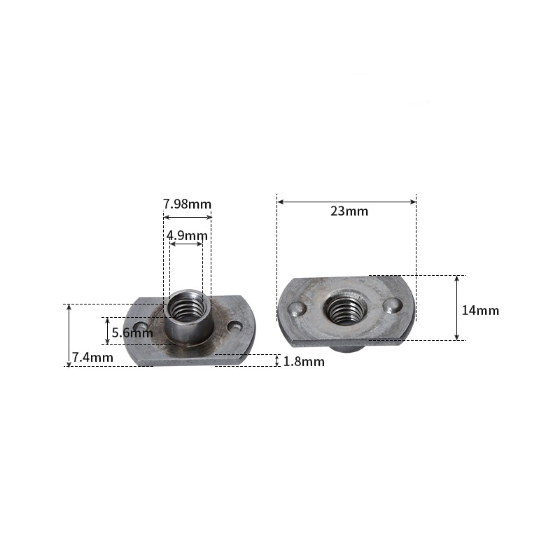 Våra standard kompromisslösa svetsmuttrar i T-stil är tillverkade av kolstål. De vanliga skyddande ytorna är zinkplätering-klart eller gult kromat-och elektro-galvanisering, vilket hjälper till att hindra rost.