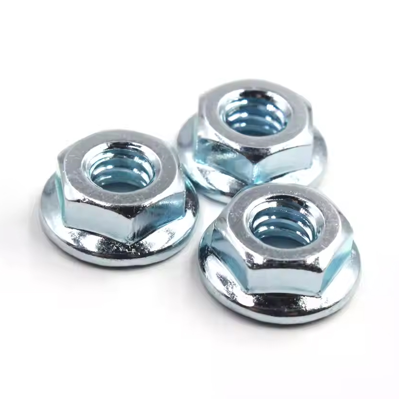 Zinkpläterade hexagonflänsmuttrar har en fläns i botten, och det finns vanligtvis flera flänsar på flänsen för fixering och tätning, vilket ökar kontaktområdet med anslutningsytan.